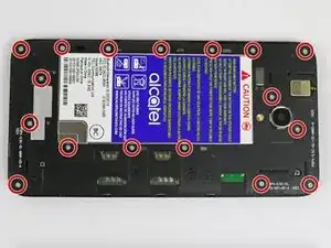 Удалите семнадцать винтов 1,2 мм с середины корпуса телефона, используя отвёртку Phillips #000.