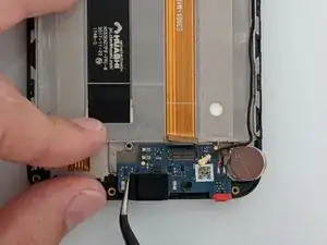 Отключите пресс-фит разъём, расположенный рядом с верхним правым углом аккумулятора, чтобы отделить аккумулятор от материнской платы.