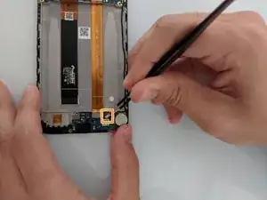Используйте пинцет, чтобы аккуратно подтолкнуть снизу микросхему, в которой размещён разъём зарядки.