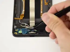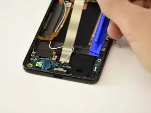 Используя пластиковый инструмент для вскрытия, подденьте плату зарядного разъёма.