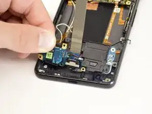 Пока не снимайте плату зарядного разъёма полностью. Она всё ещё прикреплена к мотору вибрации.