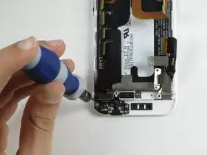 Используйте отвёртку Torx T5 из набора инструментов iFixit, чтобы открутить два 2-мм винта, фиксирующих плату разъёма питания.