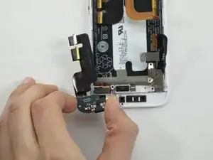 Удерживая телефон, потяните динамик вправо, вытягивая разъём из платы.