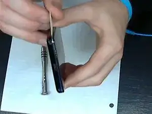 Я использовал настоящую медиаторную пластинку (она чуть уже), и проводил ею по краю с некоторым усилием; у моего телефона самая слабая точка была около угла, где появилась небольшая щель.