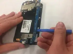 Рамка крепится к корпусу телефона с помощью пластиковых защёлок. Отсоединяйте каждую защёлку по очереди, двигаясь по периметру устройства, чтобы облегчить демонтаж.