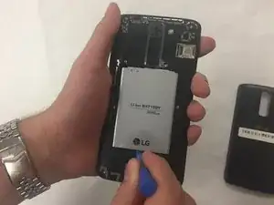 Извлеките аккумулятор, используя пластиковую открывалку.