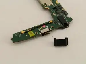 Снимите чёрную резиновую накладку вокруг порта зарядки с помощью пинцета.