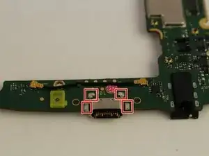 Аккуратно распаяйте четыре контакта, которые механически фиксируют порт на месте.