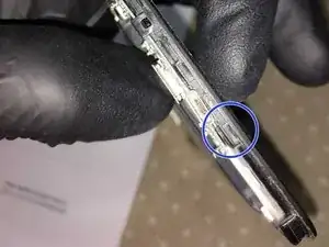 Для успешного выполнения следующего шага рекомендуется использовать нейлер для минимизации риска порезать шлейф датчика отпечатков или оставить следы жира от рук внутри устройства.