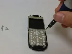Найдите пять винтов, указанных на телефоне.