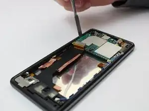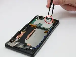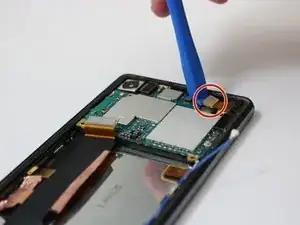 После того как материнская плата будет приподнята, возьмите её пинцетом и извлеките из телефона.