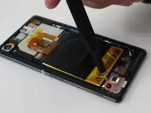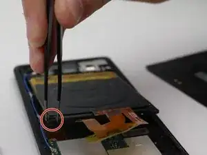 Воспользуйтесь пинцетом, чтобы снять пластиковую крышку, расположенную над динамиками.