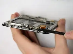 Используйте пластиковую лопатку между экраном и боковой рамкой аккумуляторного отсека, чтобы снять экран.