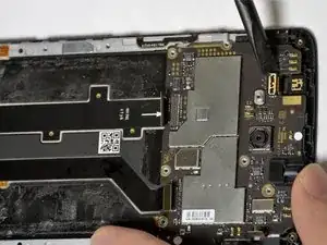 После отсоединения всех металлических защёлок подденьте лопаткой нижнюю часть платы телефона.