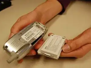 Поднимите аккумуляторный блок и полностью отделите его от телефона.