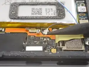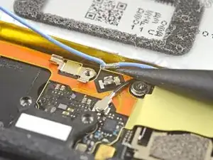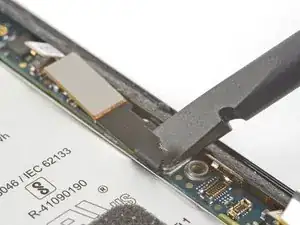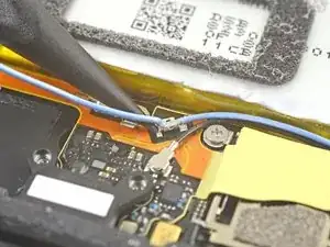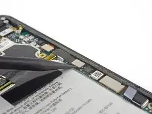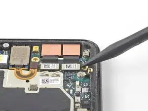 Используйте острый конец лопатки, чтобы приподнять и отключить чёрный антенный кабель от его разъёма рядом с портом USB-C.