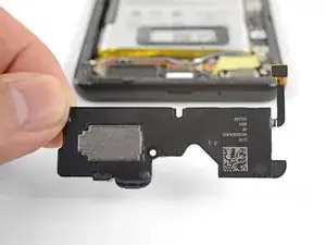 Громкоговоритель всё ещё удерживается сильной клеевой прокладкой. Перед попыткой снять его подденьте в нескольких местах, чтобы разорвать клеевое соединение.