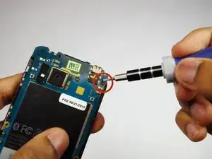 Удалите Torx винт 4 мм, крепящий зарядный порт к телефону.