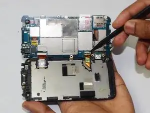 Удалите зажимы, удерживающие материнскую плату на телефоне.