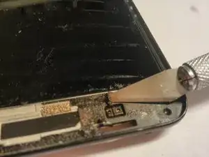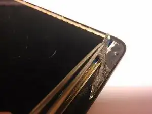 Теперь у вас должен открыться слой плёнки дигитайзера. Его необходимо отвести; по моему опыту, лучший способ — использовать тот же метод с режущей проволокой. Будьте предельно осторожны с феном. Рекомендую держать телефон в руке при нагреве феном — так вы почувствуете ожог раньше, чем повредите ЖК-экран.