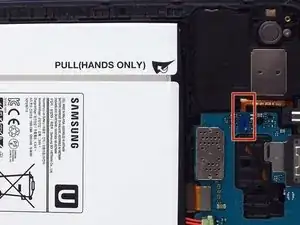 Альтернативный способ — ослабить аккумулятор с помощью пластиковой лопатки, а затем вытащить его, потянув за бумажную метку с надписью «Pull (Hands Only)».