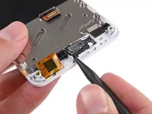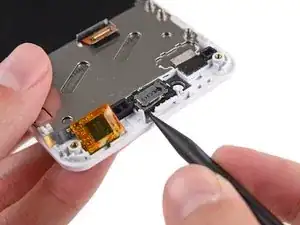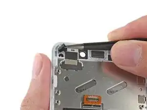 Используйте пинцет, чтобы удалить кнопки громкости и питания из сборки экрана.