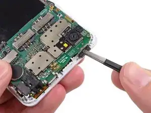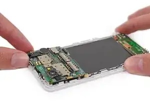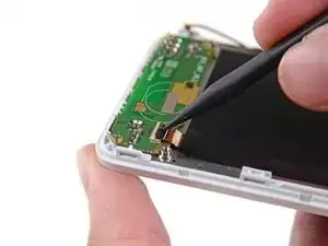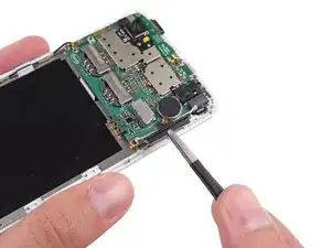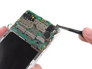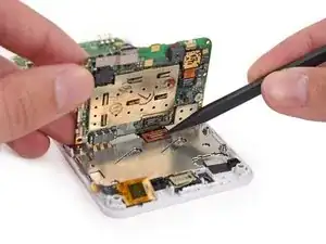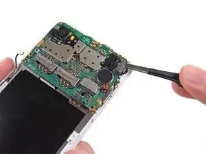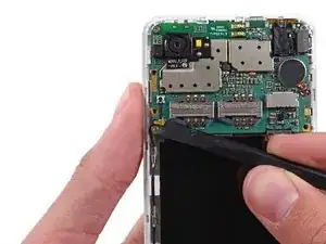Используйте пинцет, чтобы аккуратно приподнять плату и снять ее с телефона.