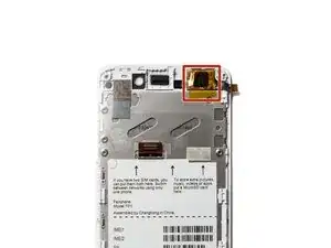 Задняя камера может быть приклеена к сборке экрана. Попробуйте поддеть ее вместе с материнской платой.