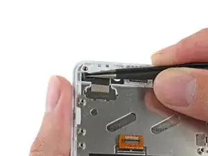 Используйте пинцет, чтобы удалить клеевую пенопластовую ленту с верхней части разъема кабеля дигитайзера ZIF.