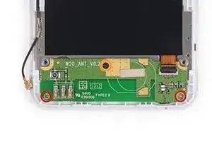 Дочерняя плата антенны Wi-Fi удерживается на передней сборке с помощью слабого клея.