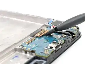 Вставьте плоский конец лопатки под разъём шлейфа дисплея и отожмите его от платы.