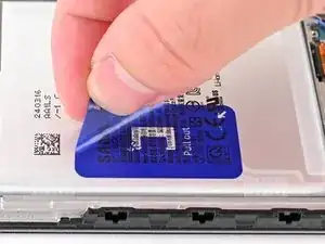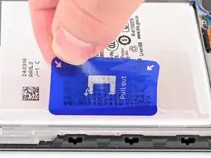 Отделите синюю тянущую ленту батареи до тех пор, пока не сможете схватить её пальцами.
