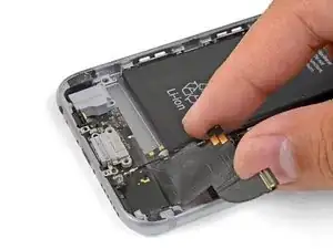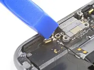 Если вы следуете этому руководству для замены разъёма Lightning, вы можете оставить подключенным антенный кабель и пропустить этот и следующий шаг. Будьте очень осторожны, чтобы не натянуть хрупкий антенный кабель при перемещении динамика.