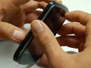 Используя пластиковый инструмент, проведите по краям пластикового обрамления экрана, чтобы ослабить и разделить первый слой экрана.
