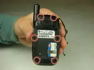 Открутите шесть 3-мм винтов плоской крестообразной головки №000 с задней панели телефона с помощью крестовой отвёртки №000.