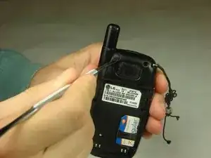 Обойдите периметр телефона металлической лопаткой, чтобы полностью отделить две сборки.