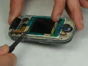Это руководство поможет Вам разобрать верхнюю часть телефона. После выполнения Вы получите доступ к соединениям дисплея и шарниру.