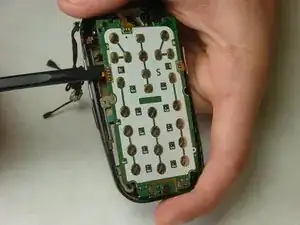Вы увидите, что цифровая клавиатура ослаблена и может быть просто извлечена из открытого корпуса телефона.
