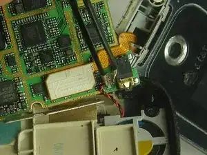 На каждой стороне материнской платы подключены медные ленточные кабели, идущие к кнопкам регулировки громкости и камере, которые необходимо вывести из корпуса телефона при извлечении платы.