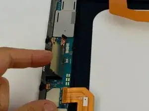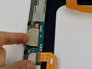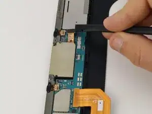 Отсоедините одноконтактный защёлкивающийся разъём, расположенный непосредственно над лотком Micro SD карты на левом среднем каркасе.