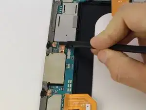 Используйте плоский конец лопатки , чтобы отщелкнуть разъём между батареей и материнской платой.