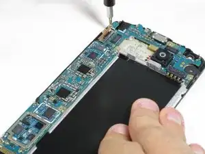 После того как экран отделён от задней части телефона, вы можете снять материнскую плату.
