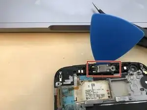 С помощью пластикового инструмента для раскрытия отсоедините шлейф, соединяющий сенсор с материнской платой.