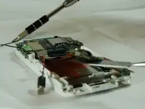 Снимите верхнюю плату и материнскую плату с телефона с помощью инструмента для открытия.