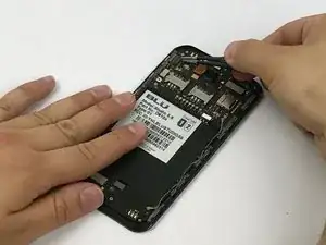 Поместите пластиковый инструмент внутрь ослабленной панели, аккуратно надавите вверх и проведите по периметру телефона, чтобы снять заднюю панель.