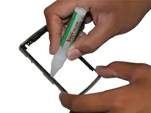 Нанесите суперклей по краю корпуса там, где будет располагаться стекло.