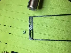 Поднимите центральную рамку с сборки сенсорного экрана, отодвигая зажимы по периметру тонким инструментом.