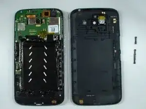 Аккумуляторная крышка / задняя панель прикреплены к основной рамке пластиковыми защёлками.