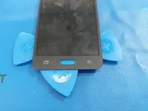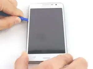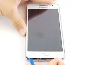 Чтобы отделить ЖК-дисплей и дигитайзер, аккуратно нагрейте переднюю часть сборки и плавно проведите медиаторами вдоль краёв ЖК-дисплея.