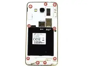 Выверните девять винтов длиной 4 мм в средней рамке с помощью отвертки Phillips #000.